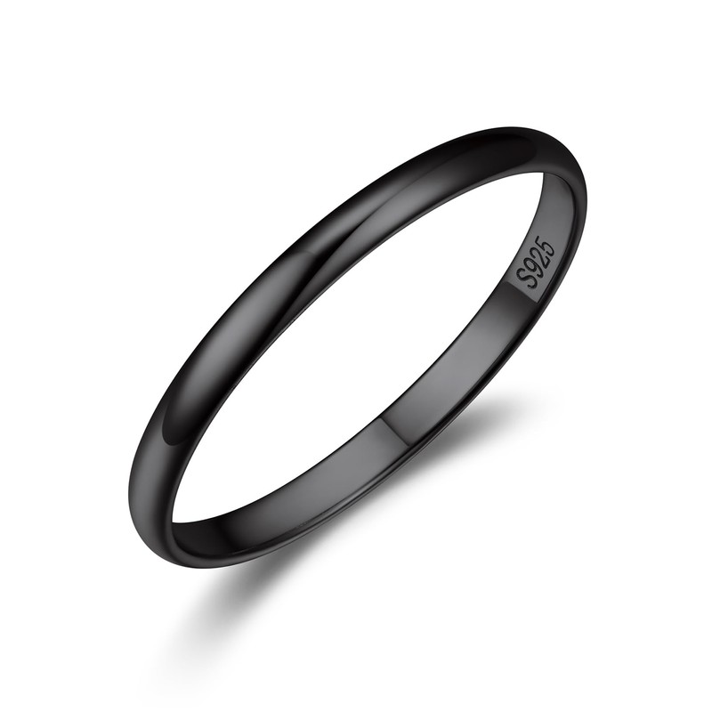 - BLACK RING-- 2mm Simple thin plain dome black plated engagement rings silver wedding band. Everyday rings and versatile as midi knuckle rings or stacking rings for index thumb finger.