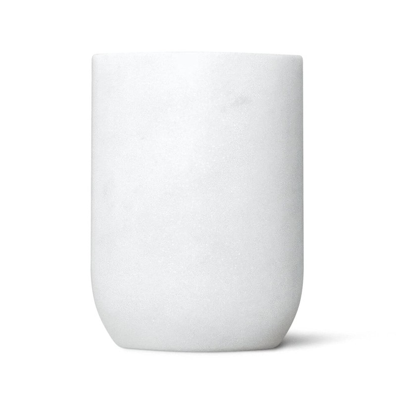 Handcrafted from solid white marble, our marble tumbler is a striking addition to any bathroom. Store your toothbrush, comb, and more. Subtle, pale gray markings intrinsic to the stone give depth and dimension. Crafted entirely by hand and polished to a lustrous finish.