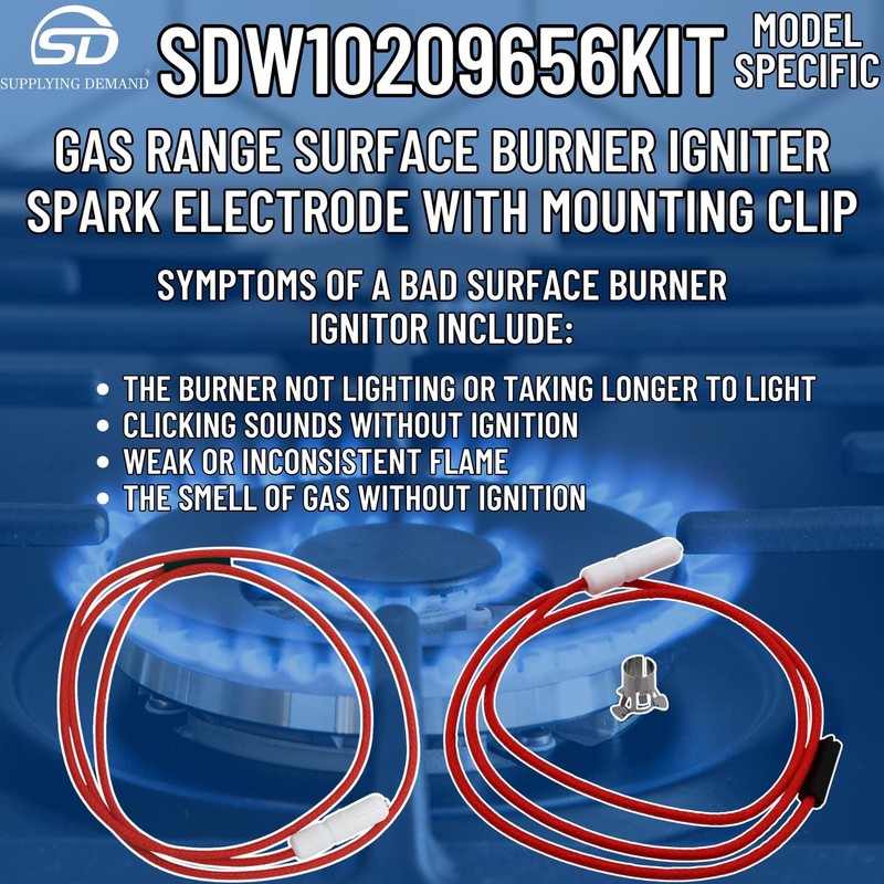 Supplying Demand W10209656 W10112313 Gas Range Surface Burner Igniter Spark Electrode with Mounting Clip Replacement Model Specific Not Universal