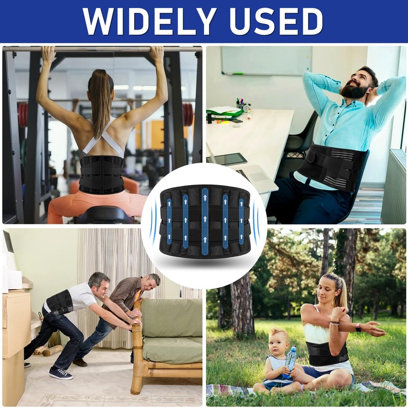 - Sustainable relief, recovery: the back brace provides long-lasting and effective relief for a variety of back problems. Such as back pain, sciatica, herniated discs, scoliosis and muscle pain. It is also suitable for protecting the lumbar spine and protecting the sports muscles, so you can enjoy freedom of movement by wearing it during daily work, sports or housework