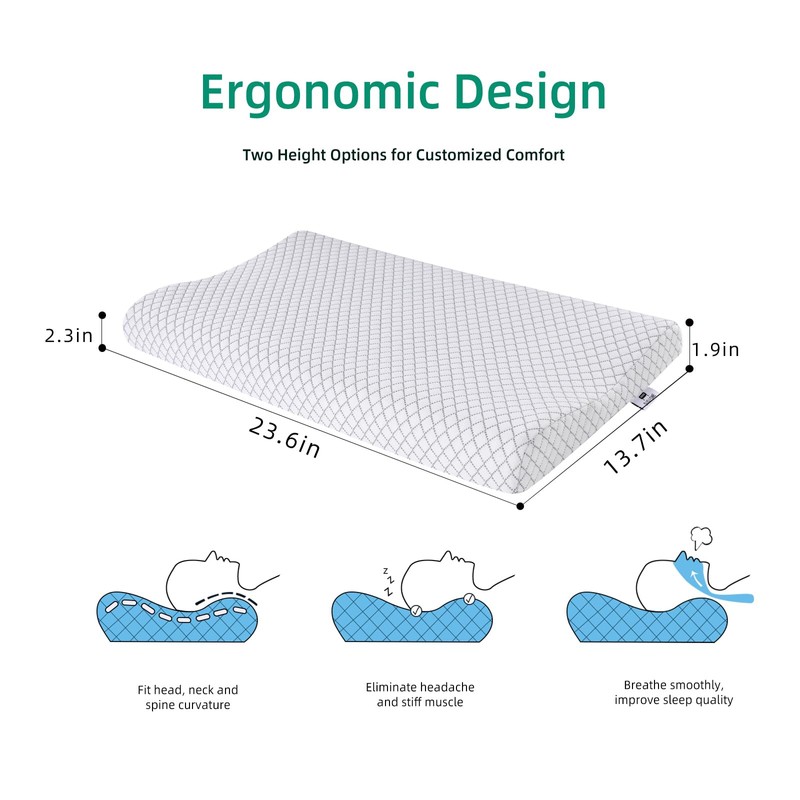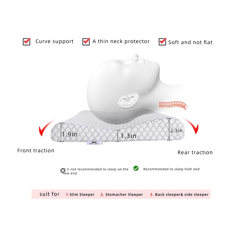 • Low thin contour profile size- (23.6x13.7x2.4/1.9 inch), curve shape with (Lower side) 1.9'' -(Higher side 2.4'' ), Can protect your neck very well.helf to releif neck pain