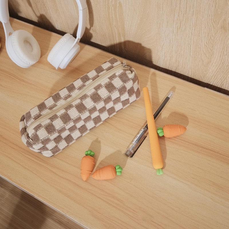 SURBEAV Pencil Case Pen Case Office College School Storage Bag Pouch Holder Box Organizer Makeup Pouch Cosmetic Bag Aesthetic Cute Pencil Case for Girls Boys Kids (Brown)
