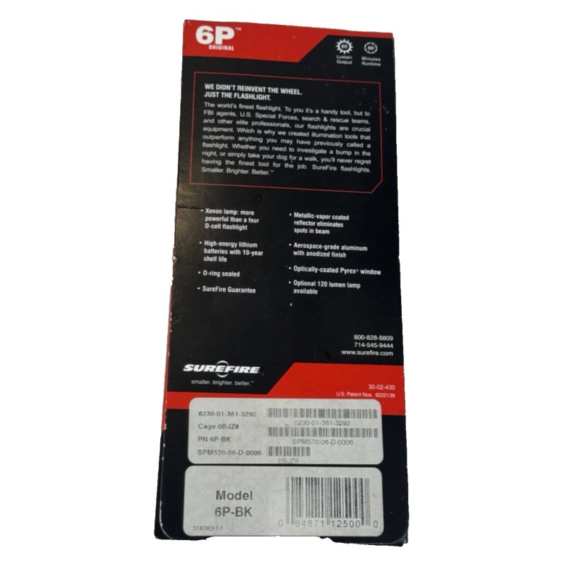 SureFire New NOS Surefire 6P Original High-Output Flashlight 6PL-BK 120 Lumens