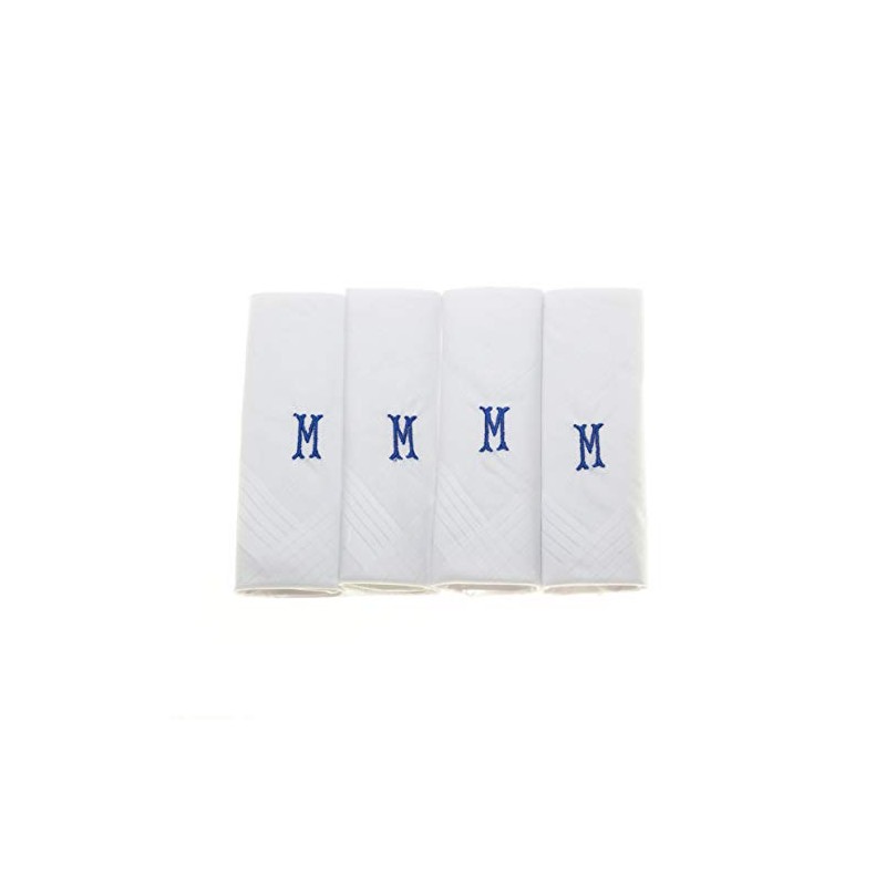 Surf the Shop Mens Initial Handkerchiefs 100% Cotton Cellophane 4 Pack Hankies Letter Silver (4 Pack, Letter M)