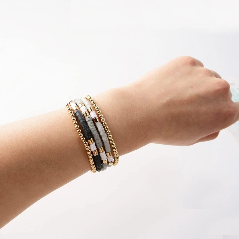 - Colorful Heishi Bracelets Set: For beach jewelry, aesthetic stuff Bracelets Jewelry we love a mix color of effortless layering bracelets. Bold and vibrant, the Bohemia bracelets are consist of flat clay beads and gold plated sequins on elastic bands.One package including 7 strands of heishi bead and gold bead bracelet, playful, colorful and stretch.