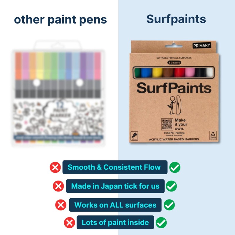 Surfpaints Primary 8 Pack Set Acrylic Paint Pens
