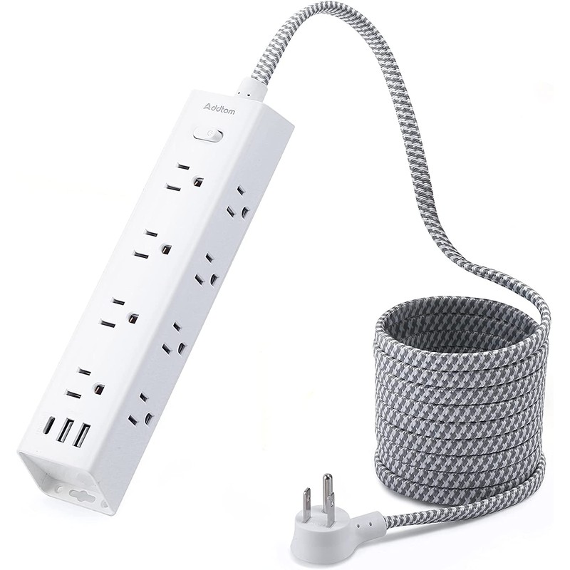 - 【15 IN 1 Power Strip】- 12 widely AC outlets power strips(1875W/15A Max)with 3 USB charing ports, the flat extension cord is 3 side design, every outlet is separated widely enough to fit 12 big plugs without blocking each other; The compact design power strip saving more space for your home, office, and college dorm room