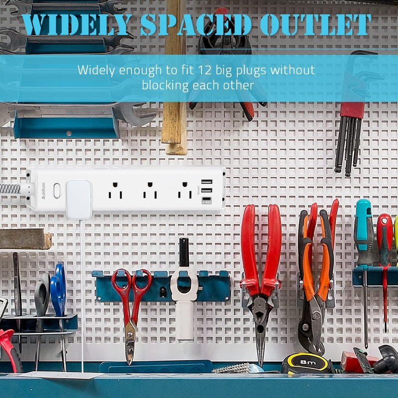 - 【Wall Mountable Power Strip】- Unique screw fixation design on both end allow this white power strip securely installed in various applications (4 screws included), This wall surge protector with usb can also be used as a desktop power strip or nightstand USB charging station without slipping off