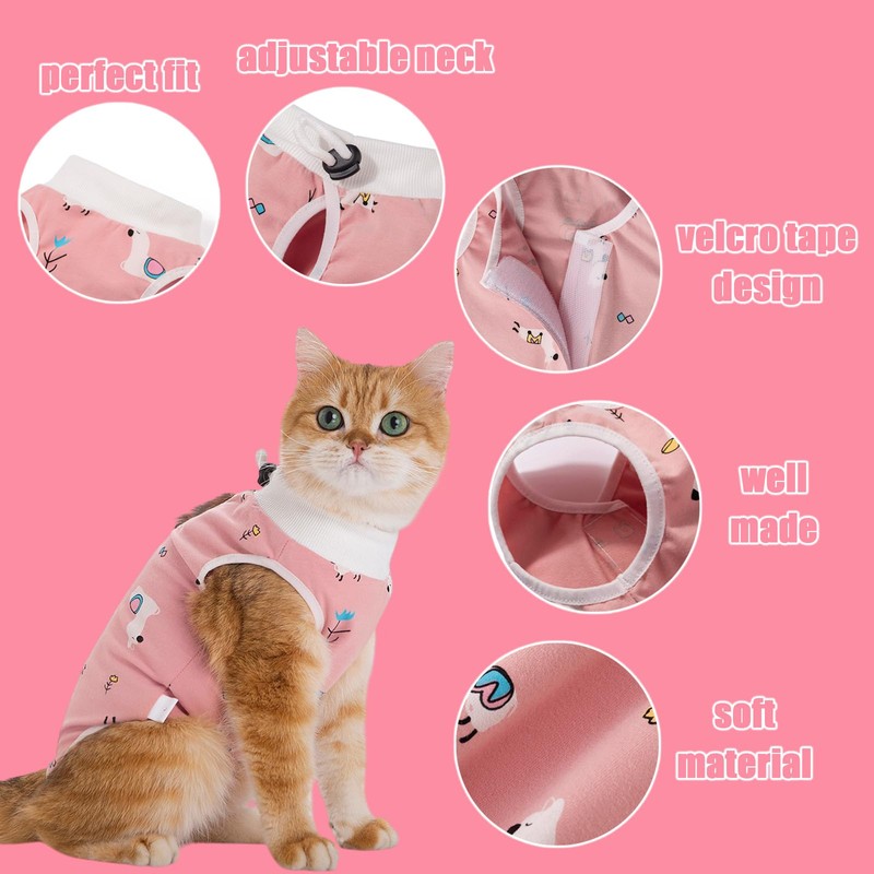 - Cone Collar Alternative- The cat body suit is a professional alternative to cones or bandages. Prevents scratching, biting, and licking wounds, reducing the risk of infection and further injury. Cat body suit post surgery can save you money on vet bills and provide peace of mind knowing that your cat is protected.