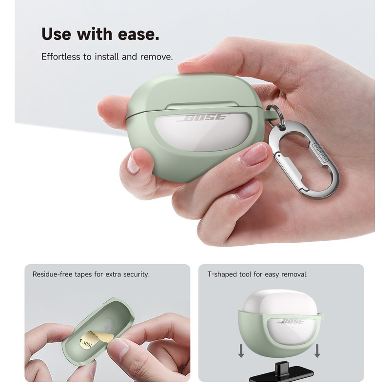 - 【Safer and Easier to Use】The New Bose Ultra Open Earbuds (2024) is easy to install and remove.Our shockproof case can be effortlessly installed in seconds. The pre-applied adhesive tape will fix the top cover in place in case of sliding or popping off, and the included T-shaped tool can help you remove the case with ease.