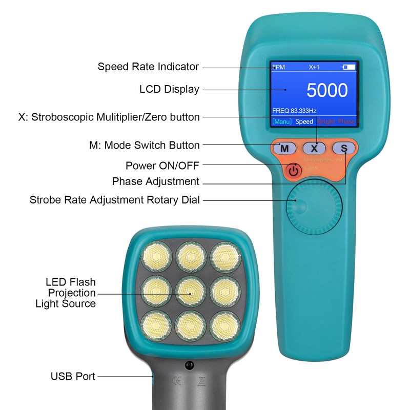 - Non-contact measurement for safety: This hand-held strobe techometer is designed to measure rapidly rotating devices or moving objects without having physical contact, which is safe and convenient.