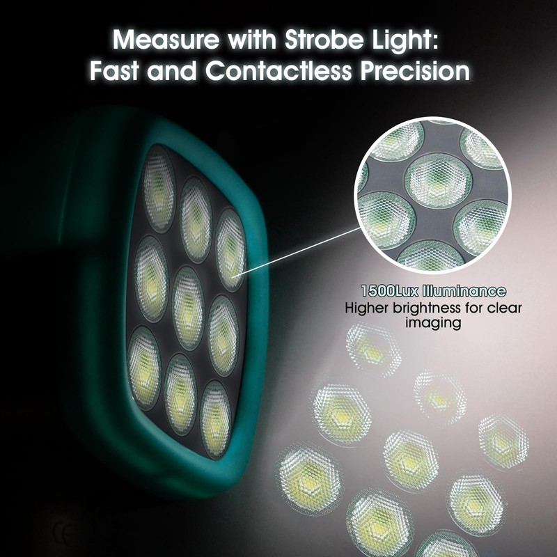SURLABA LED Strobe Tachometer, 1500LUX Non-Contact Strobe Tachometer 60~999999RPM with 9 Lamp Beads, Electronic Rotation Velocimeter for HVAC, Spinning Gears, Fans, Turbines
