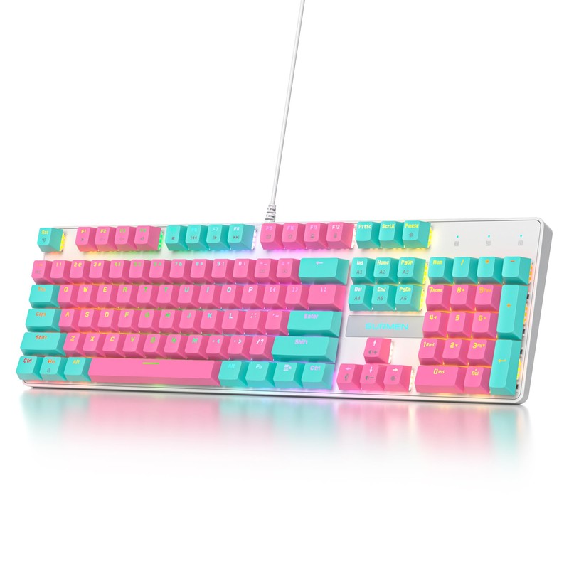 surmen Full Size Pink Creamy Keyboard with Number Pad, 104 Keys RGB Wired Mechanical Gaming Keyboard Backlit with PBT Keycaps Linear Red Switch for Laptop Desktop PC Gamers(104 Miami)