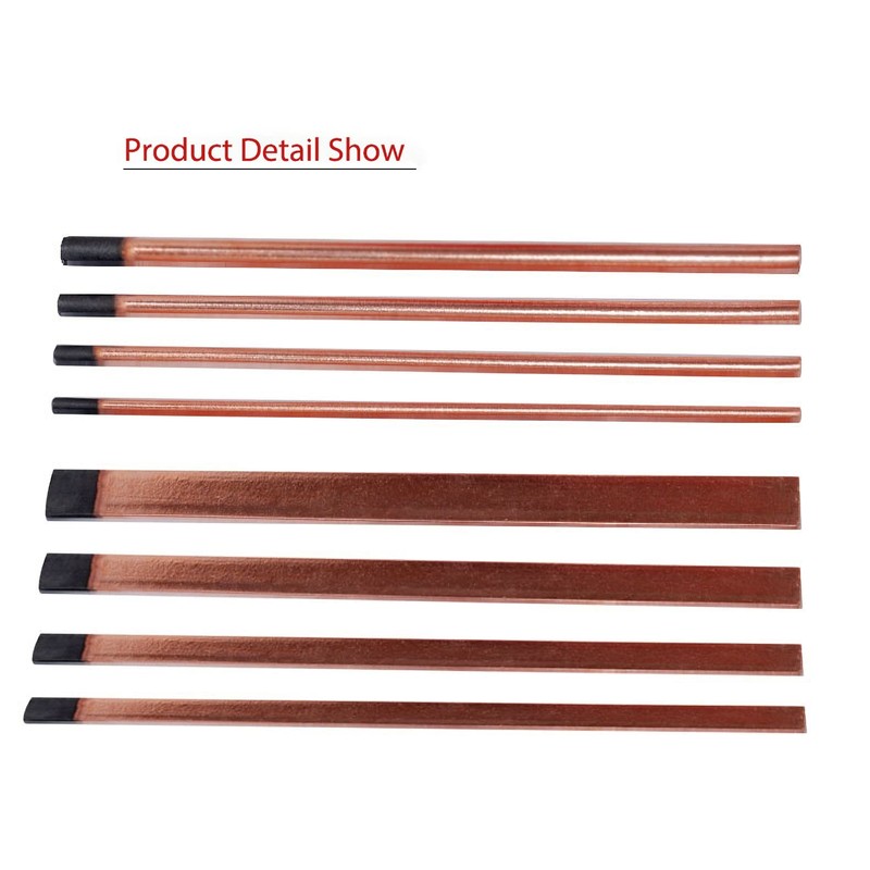- 【Flat Carbon Rod】Mainly used for planing the temporary weld bead and scar left on the component, removing the excess height of the weld and carbon arc cutting;