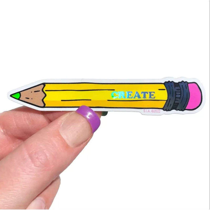 Surprise Inside Art Lot of 5 Weatherproof Vinyl Stickers: Holographic Creativity Pencil