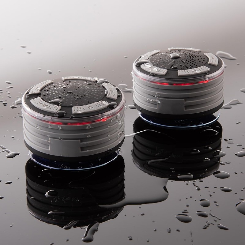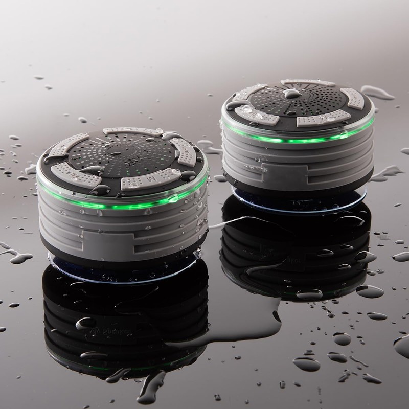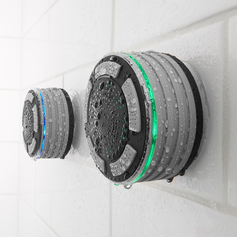• The Surround Sound Shower System gives you the ultimate musical showering experience, with dual speakers that provide vibrant wireless sound for up to 8 hours. Onboard controls let you play, pause, skip and reverse tracks, adjust the volume — even answer an incoming phone call with the built-in microphone. Installs easily with built-in suction cups. Compatible with all iPhones, iPads, Samsung Galaxies and other Android devices.