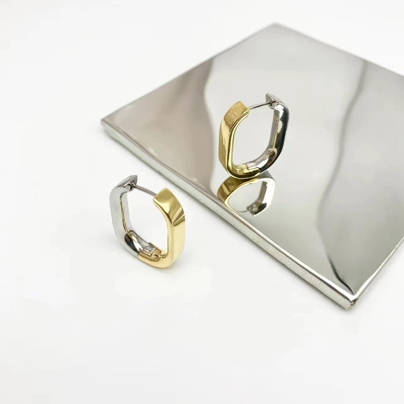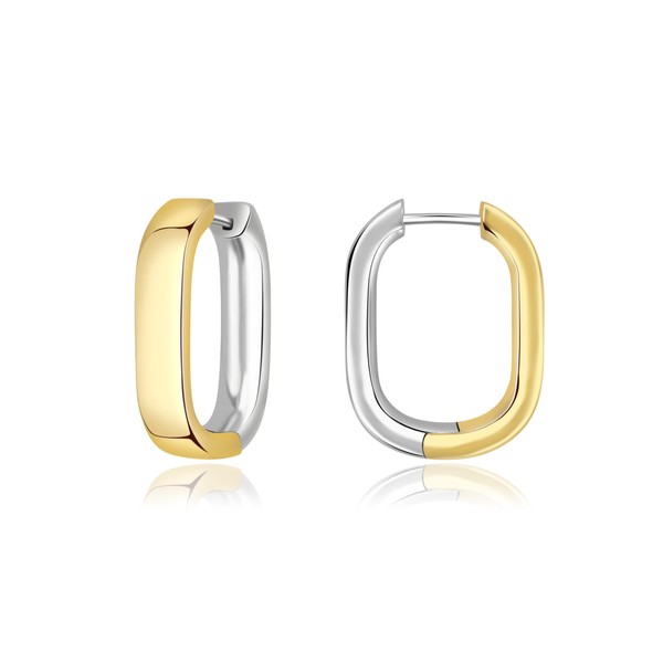 - 【Technology】:The material of the two-tone square hoop earrings pins are 925 fine silver.The surface of the two tone huggie earrings is electroplated with 18k gold.