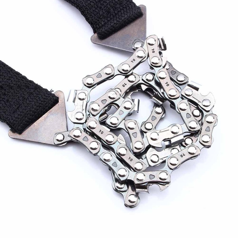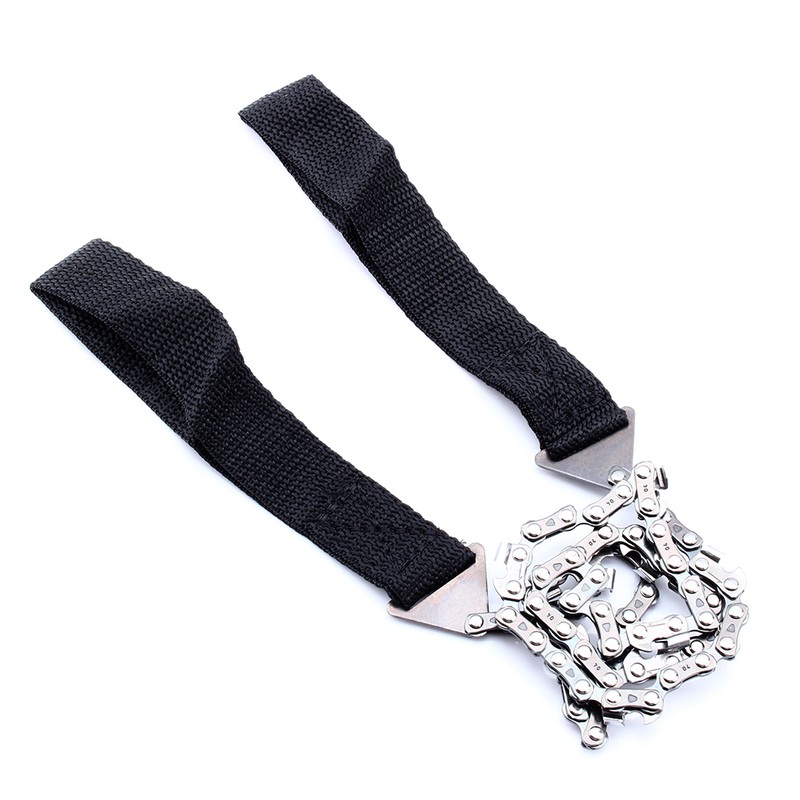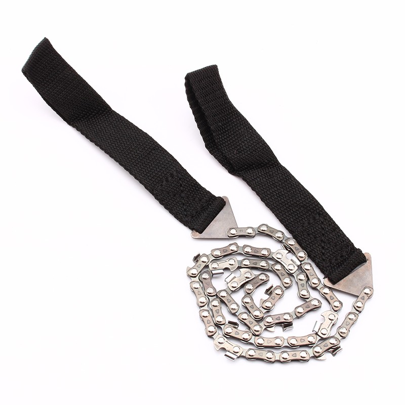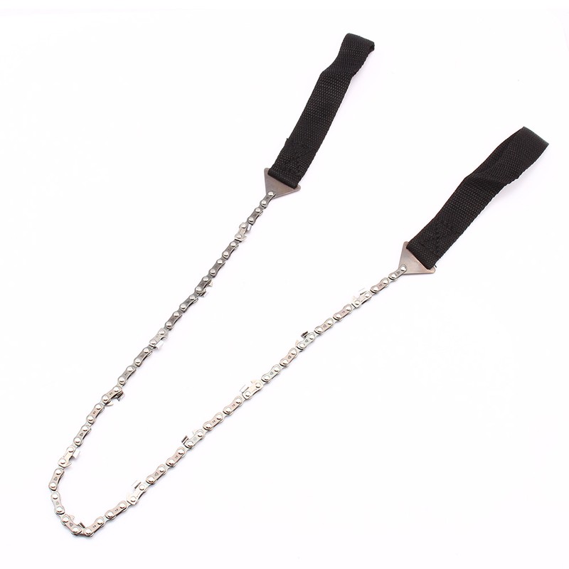 1、Lightweight and small, easy to carry and use. 2、Allows you to work when noise is not desirable. 3、Used where the normal chain can not reach. 4、Constructed of high‑strength, heat‑treated steel. 5、Great survival tool for cutting wood to make fire or shelter in an emergency.