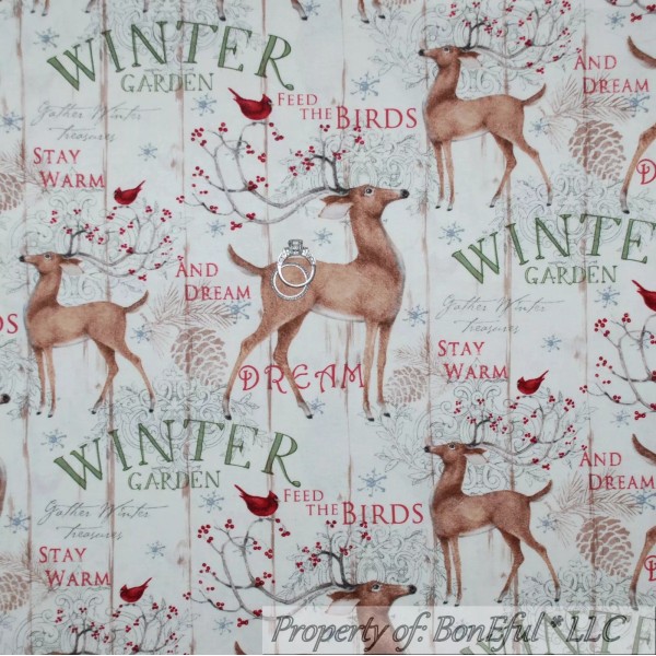 Susan Winget BonEful Fabric FQ Cotton Quilt Country Deer Red Cardinal Bird Berry Xmas Tree US