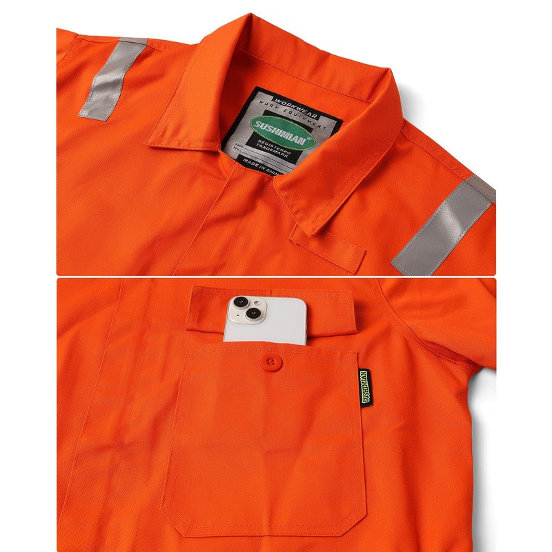 SUSHIMIAN Men's Work Coverall High Visibility Overalls Mechanics Coveralls Workwear Jumpsuit with Multi Pockets, Orange, S