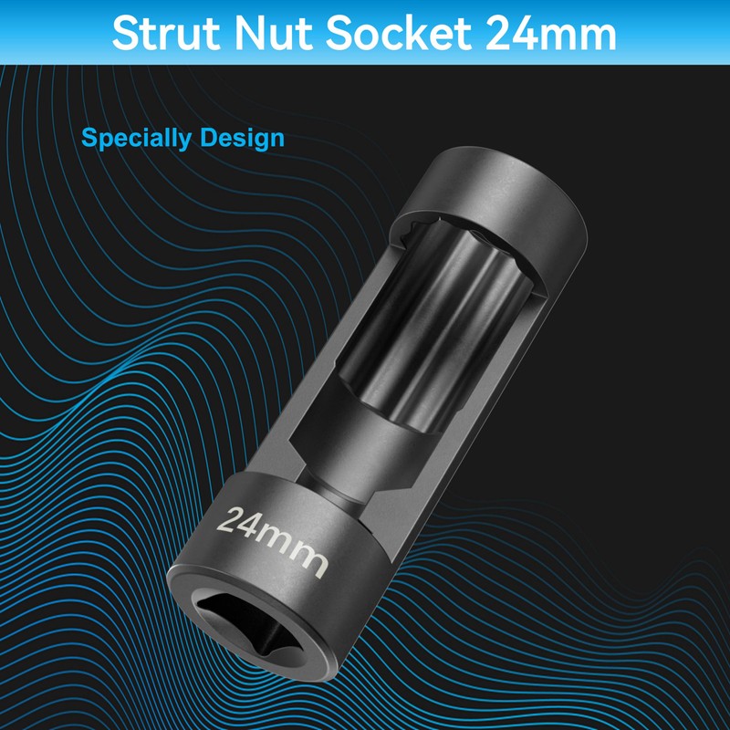 - Specification: 24mm strut nut socket with 12 point design, 1/2" square drive slot, The length is 3.1 inches. Various size can meet many different vehicles.