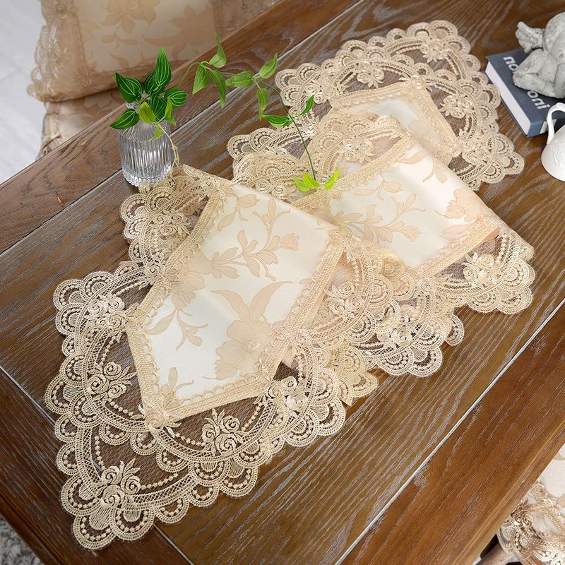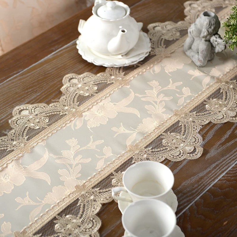 SUTAVIA Lace Embroidered Table Cloth,Rectangular Farmhouse TableCover,Classic Antique Flower Decor Macrame Tablecloth,for Elegant Dinner Tables (Champagne, Table Runner, 16x60 Inch)