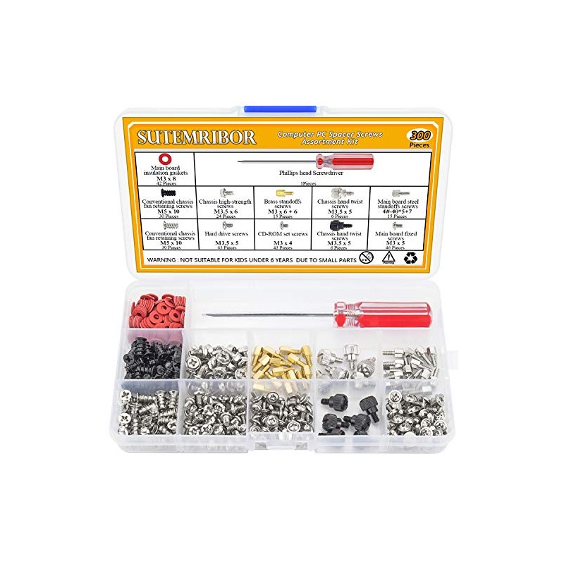 - √ Sutemribor 300PCS Personal Computer Screw Standoffs Set Kit for Hard Drive Computer Case Motherboard Fan Power Graphics