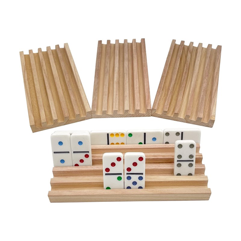 SUTIMSHE Natural Wood Domino Racks, Domino Tiles Holders,Domino Trays Set of 4 for Mexican Train Chickenfoot and Other Dominoes Games