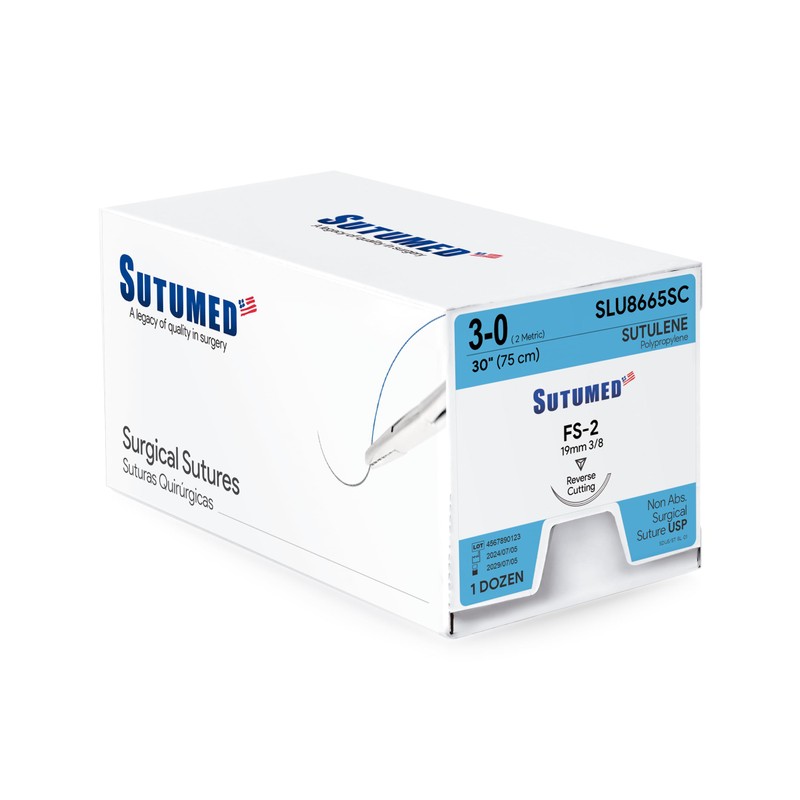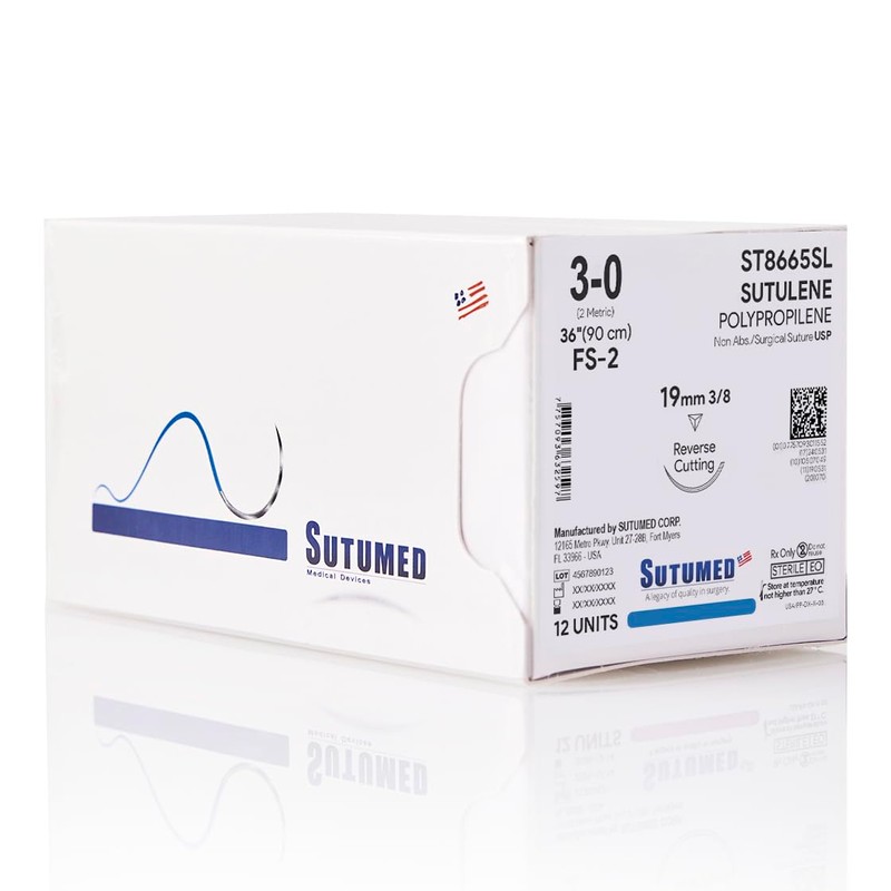 Sutumed SUTULENE Non-Absorbable Polypropylene Surgical Suture USP Size 3-0, 3/8 19mm Reverse Cutting Needle, 30 Inches (76 cm), 12 Count"
