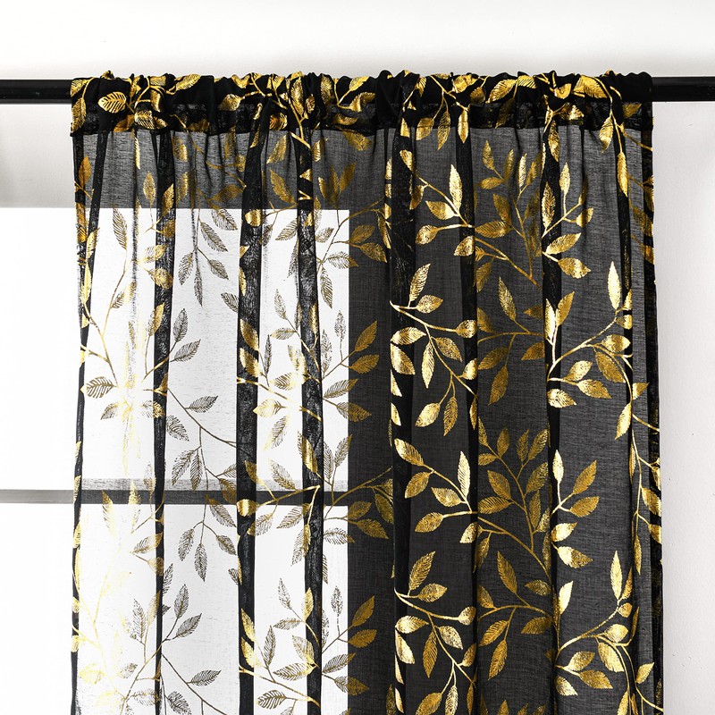 - 【Gold Foil Print】These fancy sheer curtains designed with bronzing foil printed vines and leaves pattern which brings modern and fashionable feelings to your room.