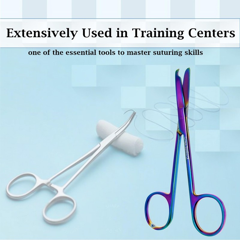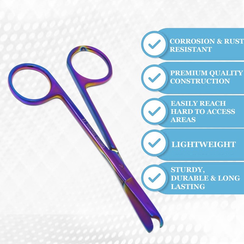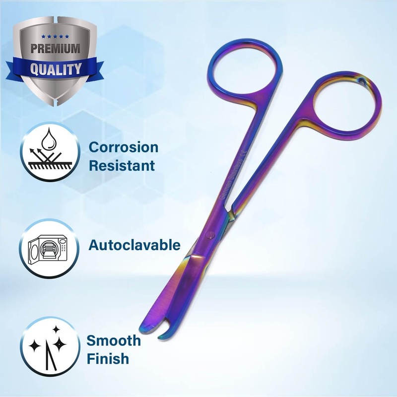 Suture Stitch Scissors 4.5" with Crescent Delicate Hook- Perfect for Suture Removal, First Aid, EMS Training and More Premium Quality Instrument- Stainless Steel (Rainbow)