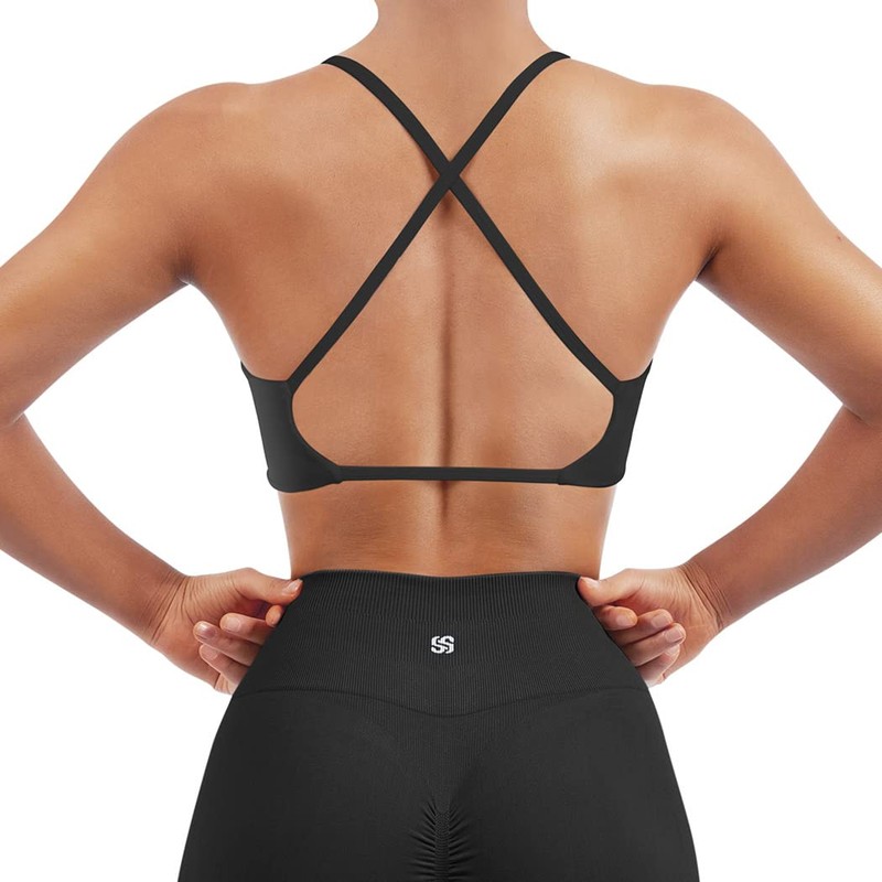 - Backless Strappy Sports Bra Pack: Cross open back crop tops, Strappy sports bra with thin spaghetti straps, Twist V neck plunge sports bra multipack