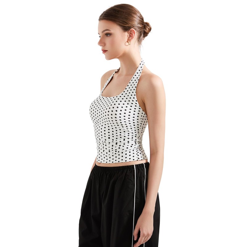 SUUKSESS Women Halter Tank Tops Double Lined Basic Backless Y2K Trendy Going Out Tops (Polka Dots,S)