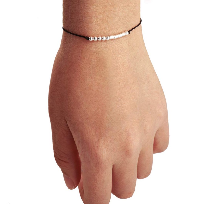- Adjustable bracelet: Bracelet Size About 6.3inch-11inch/16cm-28cm. Material: The morse code bracelet is made of sterling silver beads, waxed cord