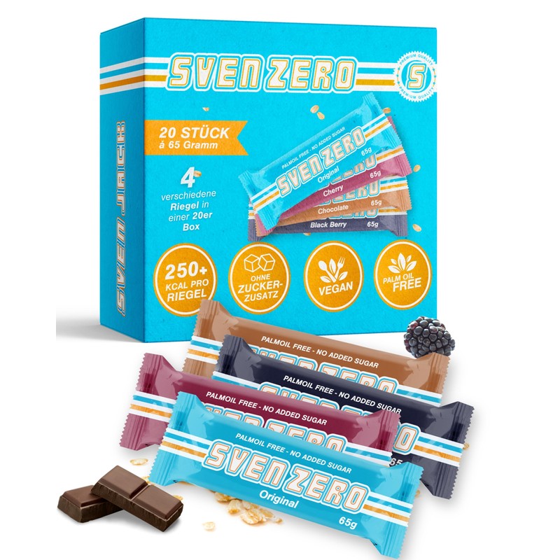 svenjack Sven Jack (Energy Cake) Haferriegel Zero Mixbox 20x 65g | Haferflocken Riegel in 4 Sorten I Energieriegel ohne Zucker & Palm?l I Vegane Haferriegel I No added sugar I Kalorien Riegel