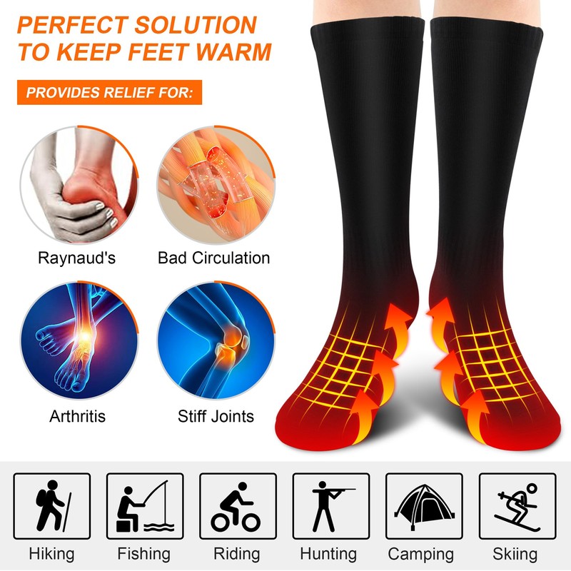 - 【Widely Use】Whether you’re people who’s with arthritis,raynaud's,bad blood circulation,stiff joints, or you’re into hunting,camping,fishing,hiking,motorcycling,skating,skking,or snowboarding, this rechargeable heated socks are your warm choice to stay warm.