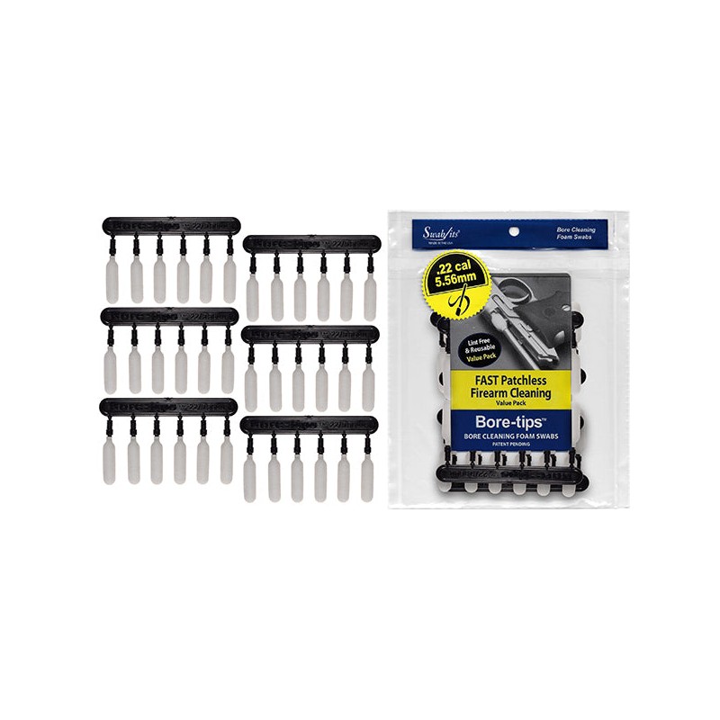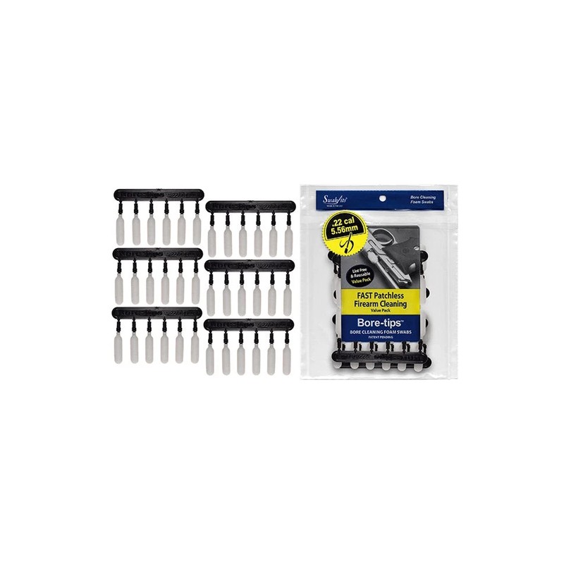 .22/5.56 Bore-tips are tough, reusable foam tips engineered for 100% bore contact; spreading fluids more evenly than mops and patches without lint or fibers. Their non-abrasive foam allows them to be run in both directions, while their absorbency requires less solvent/lubricant. Washable and reusable, they affix to a standard rod with 8/32 threading.