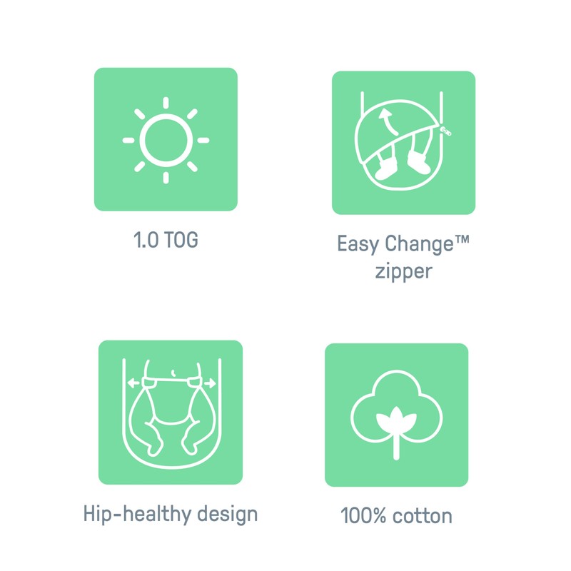 The SwaddleMe Easy Change Swaddle creates a cozy, womb-like feeling and helps prevent the startle reflex that sometimes wakes baby. The adjustable baby swaddle wrap has hook and loop fasteners for easy, secure swaddling. This Easy Change swaddle blanket features soft fabric that is gentle on baby’s skin and an Easy Change zipper that allows for diaper changes without unswaddling baby. The soft adjustable wings of this baby swaddle help keep baby safe and secure while allowing for natural movement. Slits on the back of swaddle are for use in swings & bouncers. Do not use in infant car seats. For babies in the first stage of the SwaddleMe Stages of Sleep - perfect for your newborn who is not yet rolling over and likes to be swaddled with their arms in. At SwaddleMe, we know that being well-slept leads to a happier life for babies and parents.