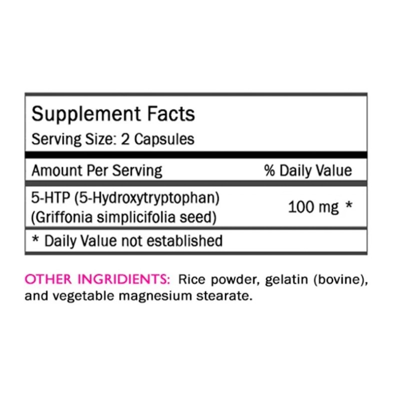 - Ingredients: 5-HTP, 5-HYDROXYTRYPTOPHAN
