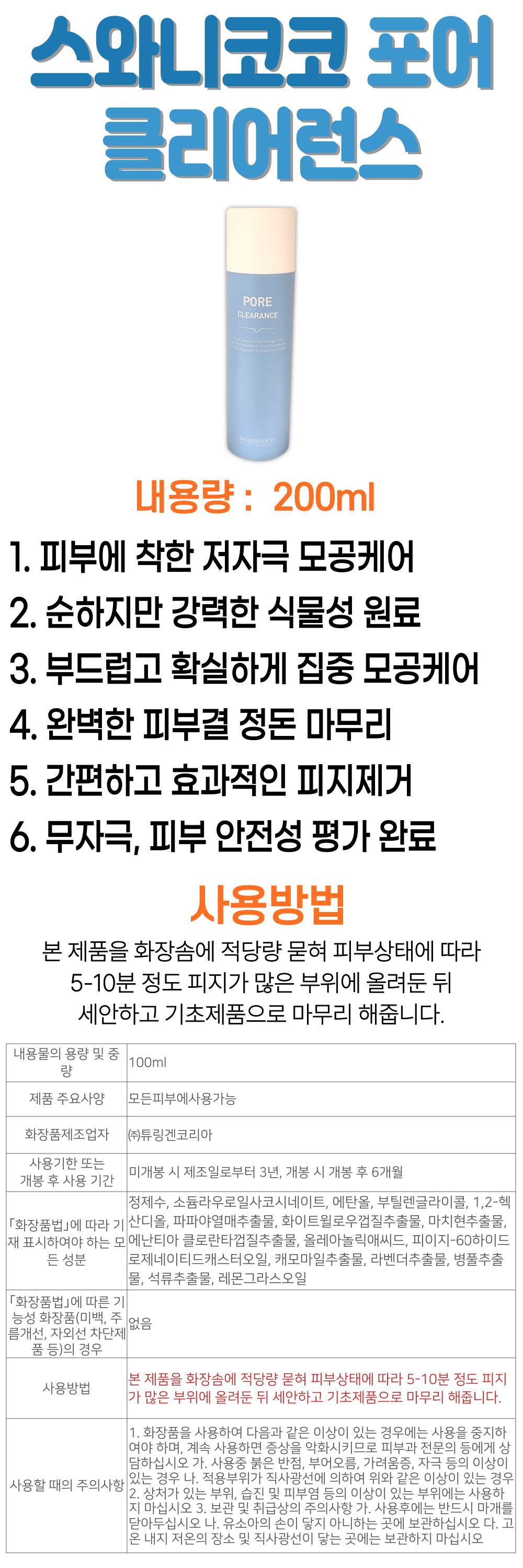 스와니코코 포어 클리어런스 피지연화제 식물성 원료 무자극 저자극 피지제거 액 화장품 코 턱 나비존 모공
