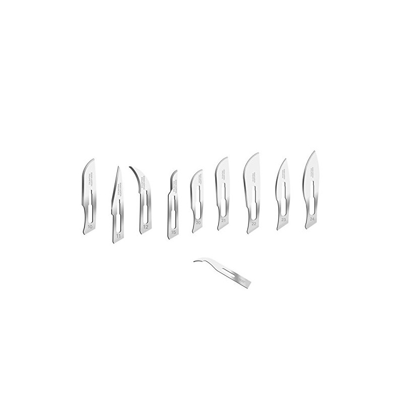 - The #11 blades fit handles No. 3, 3L, 3G, 5B, 7, 9 and B3. They are sterile and single use, individually wrapped in metallic foil and sold in a box of 100.