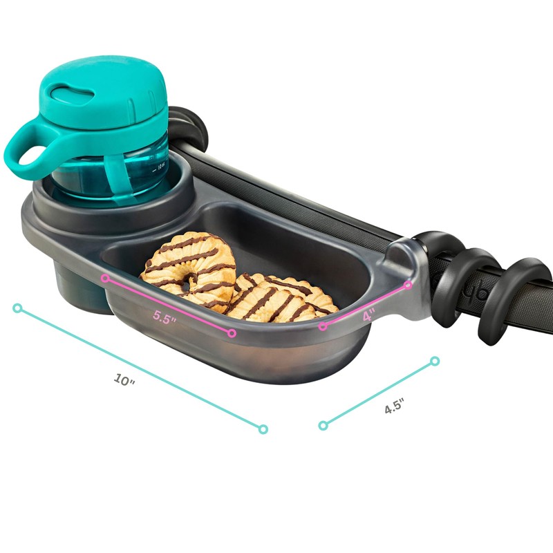 • [ COMPARTMENTS ] Features a cup holder that fits most baby bottles, sippy cups and drinks. The snack compartment was ergonomically designed to be easy for the child to grasp and reach their food and snacks inside.