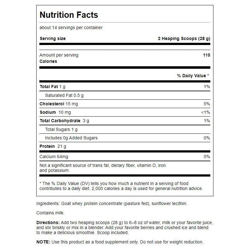 Swanson Goat Whey Protein Concentrate 14 oz Powder