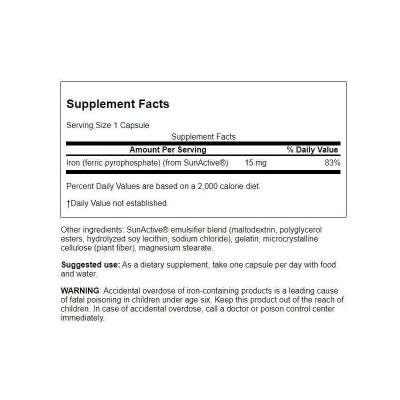 Swanson Sunactive Non-Irritating Iron 15 mg 90 Capsules