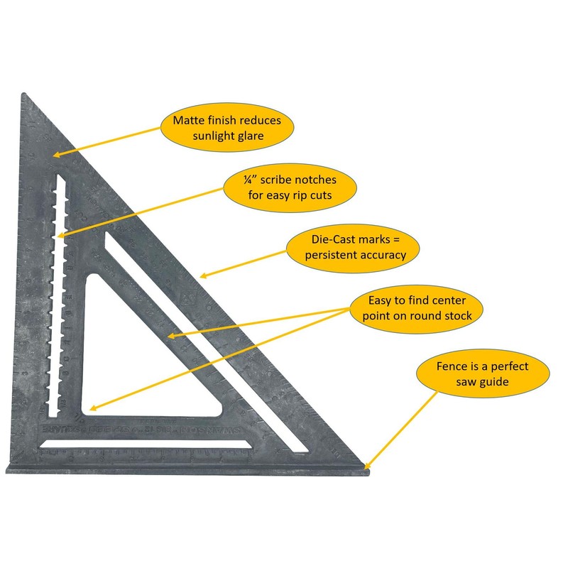 Swanson Tool Co., Inc Swanson T0108 Big 12 Speed Square Layout Tool with Blue Book, Plain gradations, 12-Inch