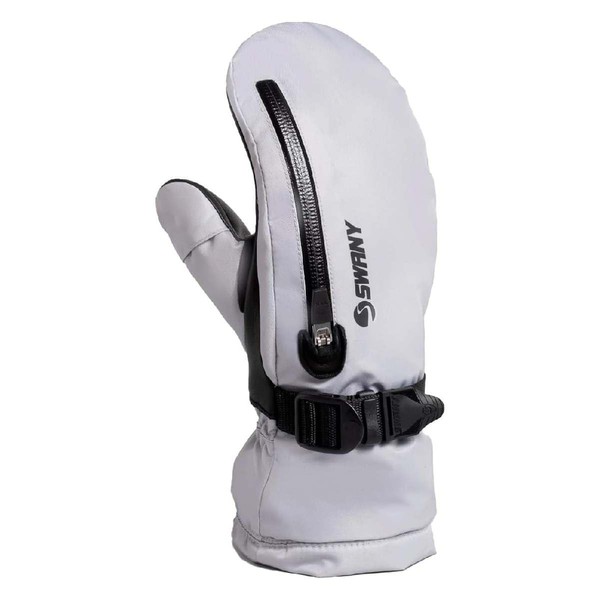 Swany Men's Arctic Touch-Screen Compatible Insulated Warm Durable Leather Winter Mittens with Quick Release Strap, Light Gray, Medium