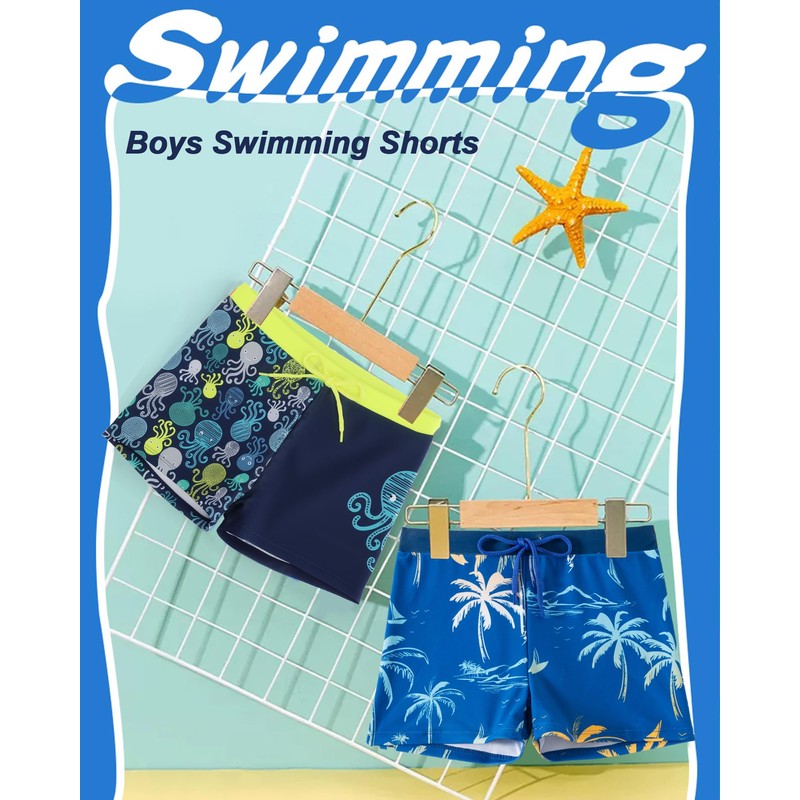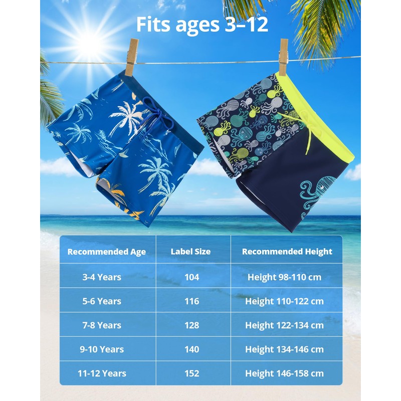 SWAUSWAUK Boys Swimming Trunks with Inner Lining 3-12 Years Adjustable Waistband Summer, Blue and coconut, Ages 9 - 10