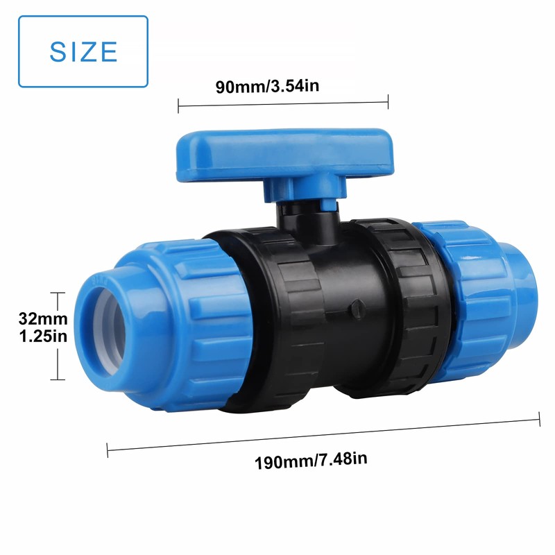 SWAWIS Pack of 2 Ball Valve for PE Pipe Plastic Ball Valve PP Fitting Screw Connection for PE Pipe PE Pipe Ball Valve, 32 mm (Blue)
