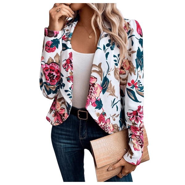 SweatyRocks Women's Lapel Floral Print Blazer Long Sleeve Draped Open Front J...