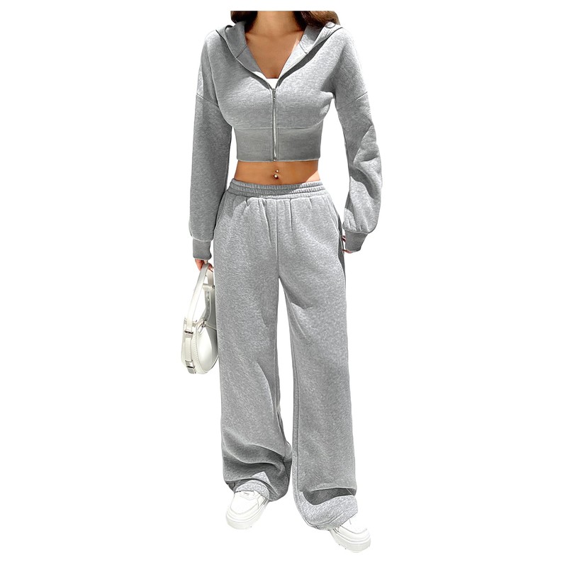 SweatyRocks Womens 2 Piece Outfits Lounge Sets Fall Sweatshirt Wide Leg Pant Casual Matching Sweat Set Tracksuit Large Grey
